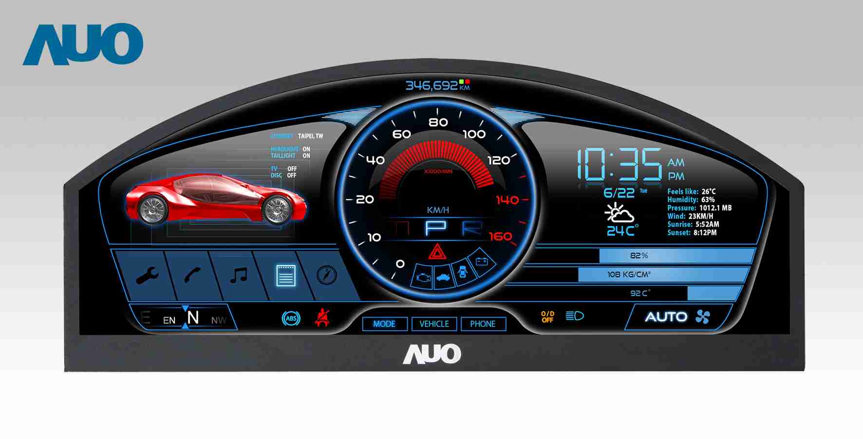 开云电子 12.3吋超高解析异型切割车用面板,,,拥有流线外观及精细画质